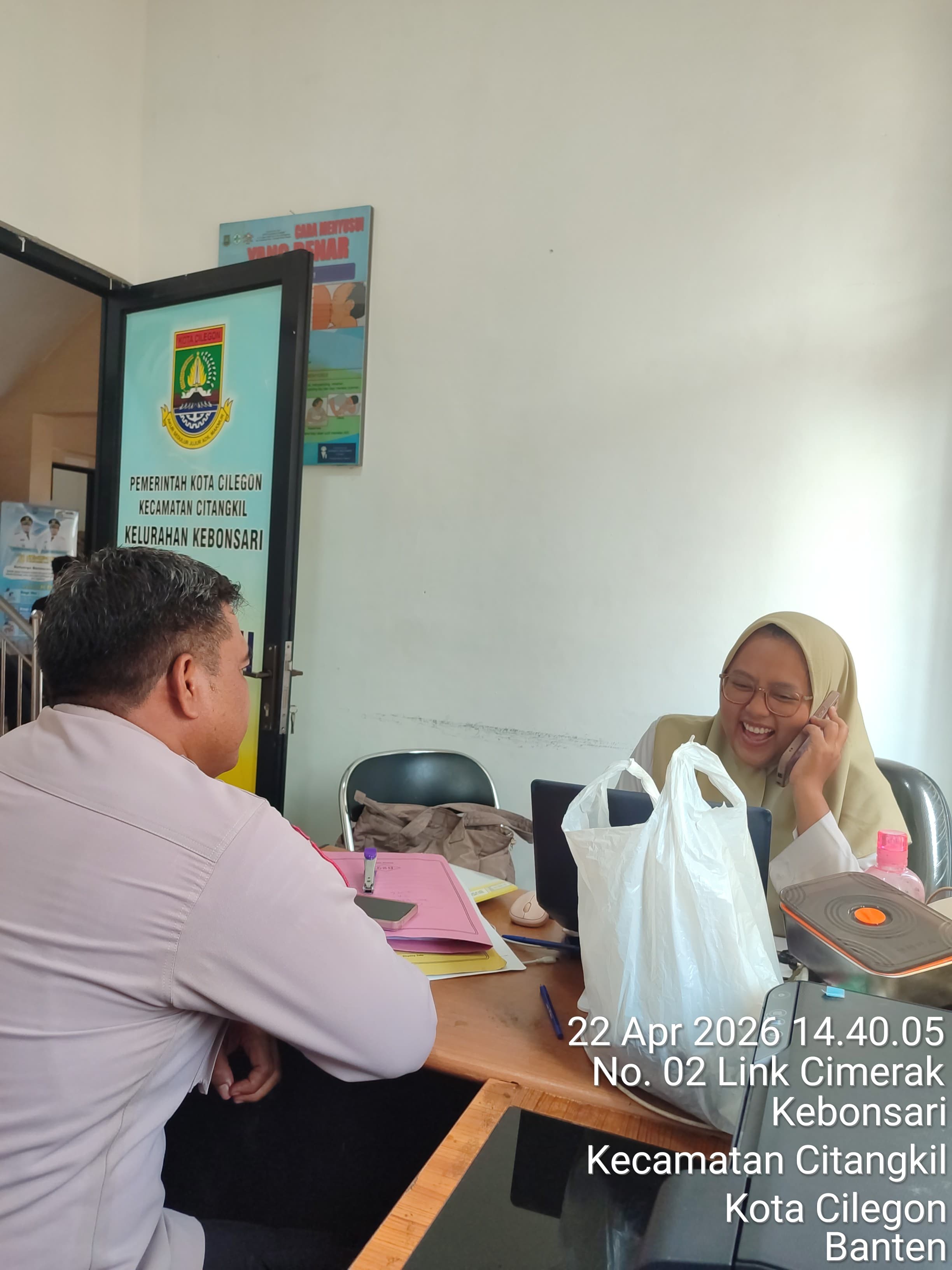 Bhabinkamtibmas Polsek Ciwandan Bantu Pelayanan Masyarakat Dikantor Kelurahan.
