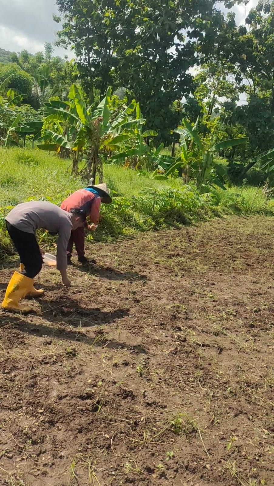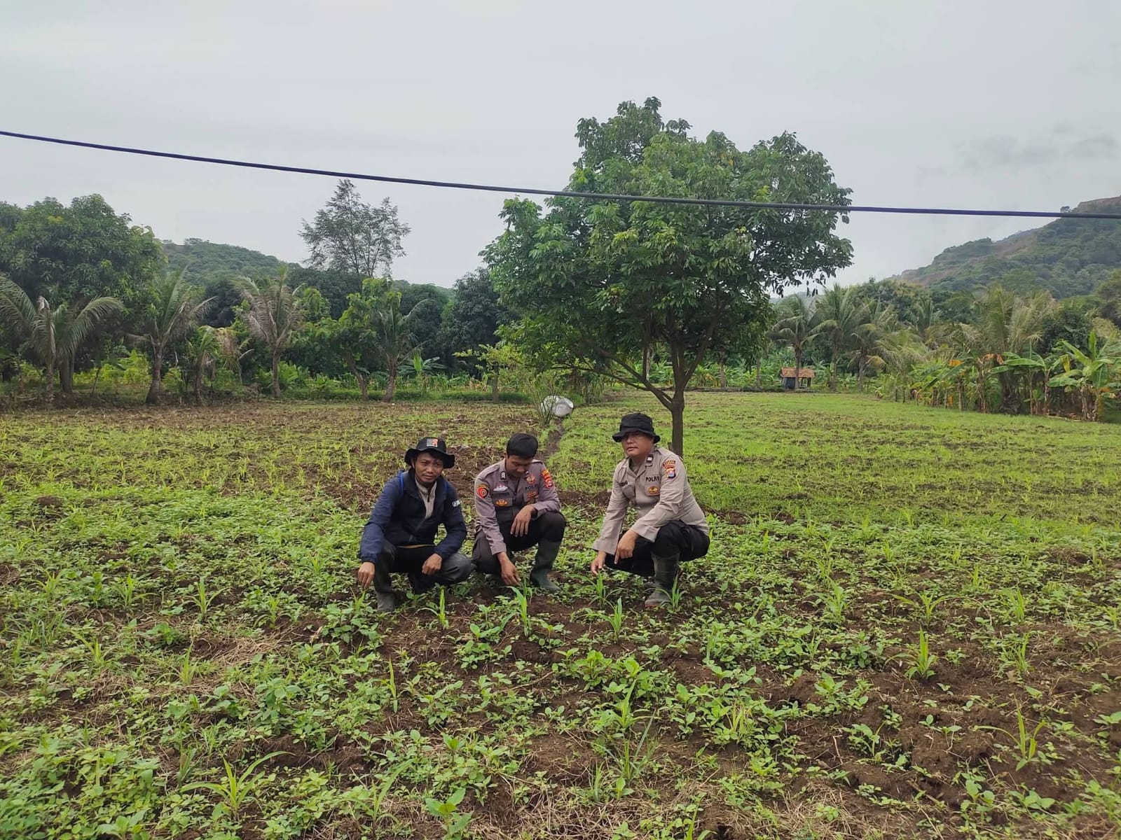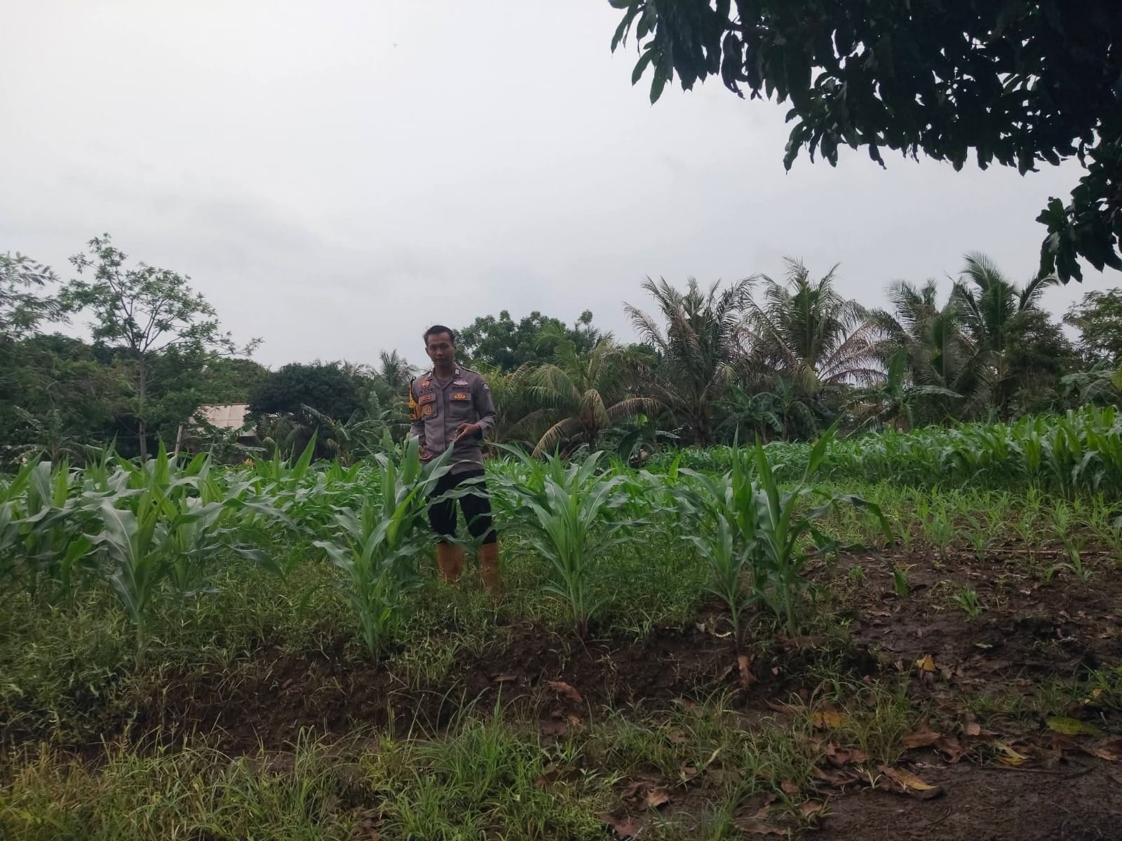 Pantau lahan jagung pok tani sinarjaya kecamatan.puloampel Desa Banyuwangi oleh Bhabinkamtibmas Polsek Puloampel