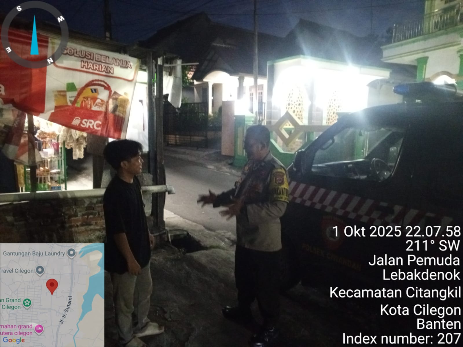 Cilegon - Personil Polsek Ciwandan Ciptakan situasi keamanan dan ketertiban di masyarakat (Kamtibmas) yang aman kondusif Dengan Melaksanakan kegiatan patroli malam guna mencegah gangguan kamtibmas dan kejahatan jalanan, Kamis (02/10/2025).