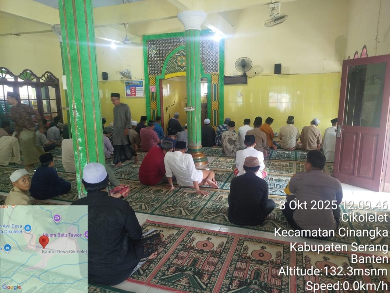*POLRES CILEGON* - Kapolsek Cinangka Polres Cilegon Polda Banten dan Jajaran melaksanakan giat Juma't keliling dalam rangka silaturahmi menjalin kemitaraan dan menjaga Harkamtibmas di Desa Binaannya sebagai bentuk mendukung Program Quick Wins Presisi Polri, Jumat (03/10/2025).