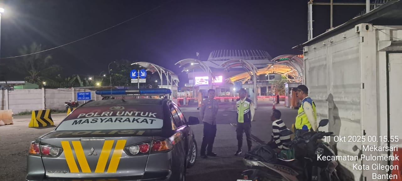 Cilegon - Personil Polsek Kskp Merak Polres Cilegon melaksanakan patroli di kawasan pelabuhan merak memberikan rasa aman dan damai, Sabtu (11/10/2025)