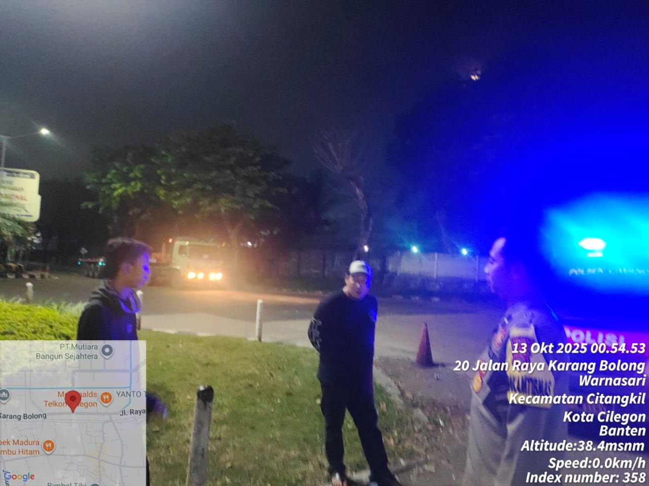 Personil Polsek Ciwandan Gelar Blue Light Patrol, Pastikan Sitkamtibmas Malam Hari Kondusif.