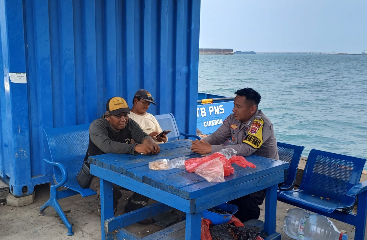 Jalin Silaturahmi, Bhabinkamtibmas Pelabuhan Polsek KP Banten berbincang dengan Buruh Pelabuhan