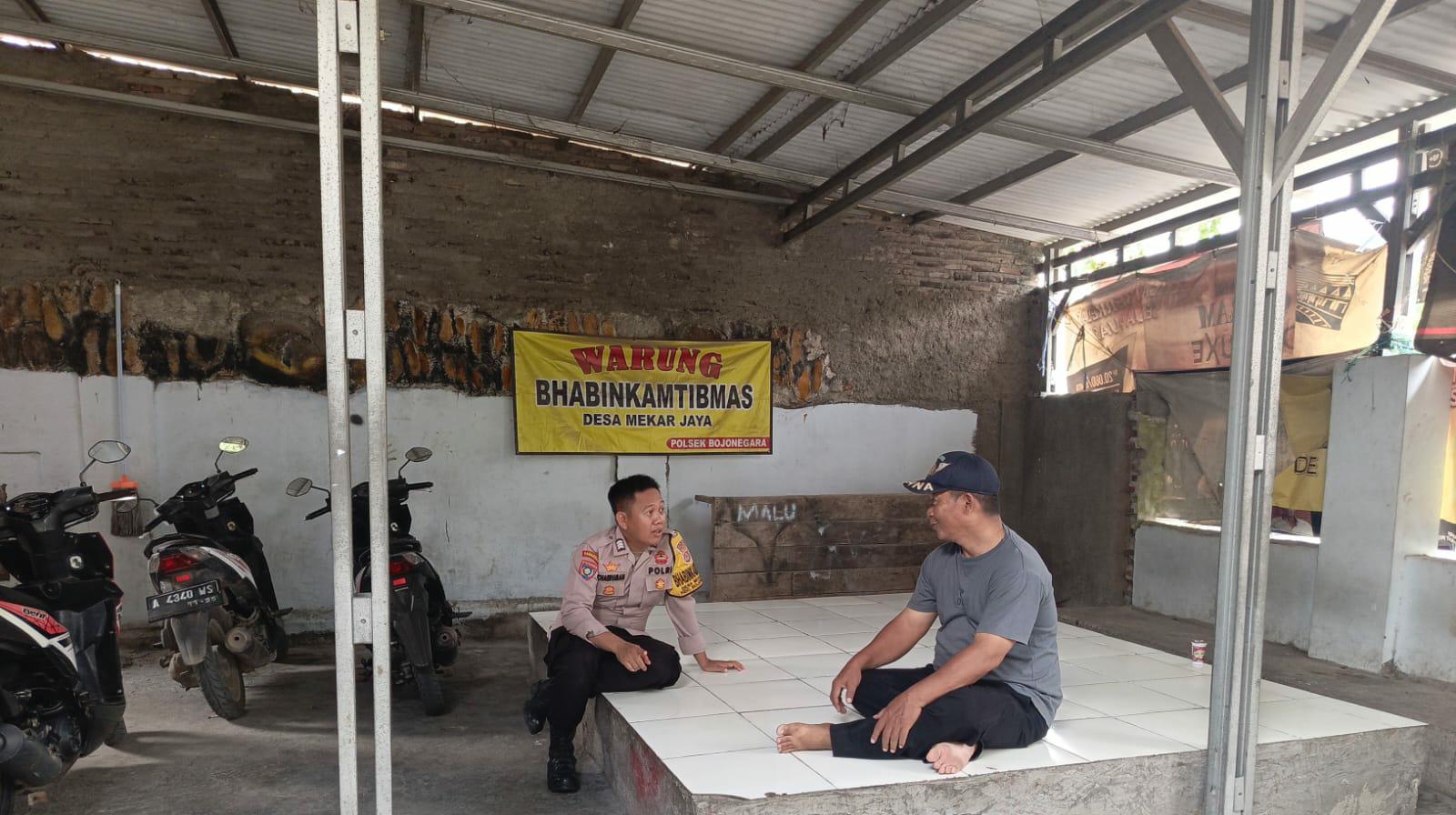 Cilegon ~  Bhabinkamtibmas Polsek Bojonegara Polres Cilegon Polda Banten Sambang dan silaturahmi dengan masyarakat merupakan salah satu tugas seorang bhabinkamtibmas untuk mengetahui situasi Kamtibmas Desa binaan dalam menjalin silaturahmi dengan Warga Desa. Wanakarta  di Warung Bhabinkamtibmas, Rabu (15/10/2025).