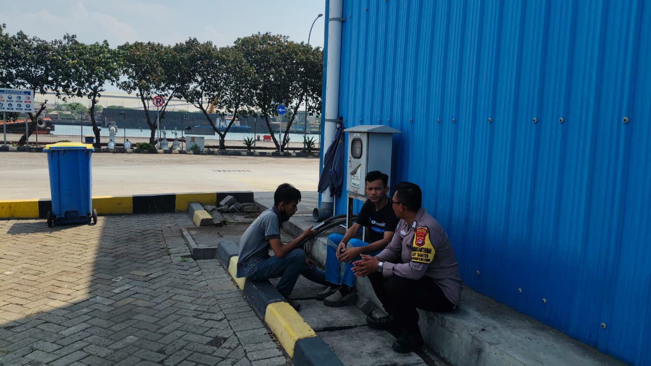 Jalin Silaturahmi, Bhabinkamtibmas Pelabuhan Polsek KSKP Banten berbincang dengan Buruh Pelabuhan