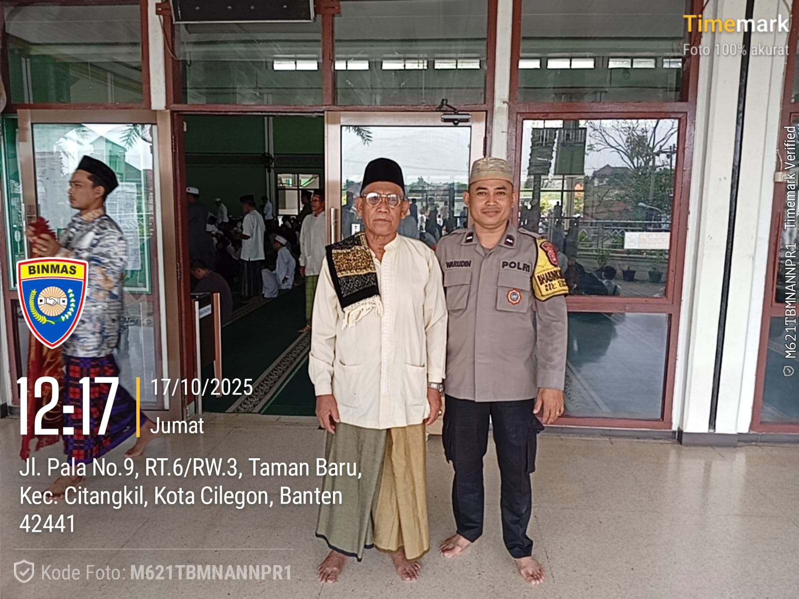 Cilegon - Bhabinkamtibmas Polsek Ciwandan Polres Cilegon Polda Banten Selesai melaksanakan Sholat Jum’at secara berjama’ah dan Sampaikan Himbauan-himbauan Kamtibmas Kepada Masyarakat Jama'ah Yang ada Dimasjid, Jum’at (17/10/2025).