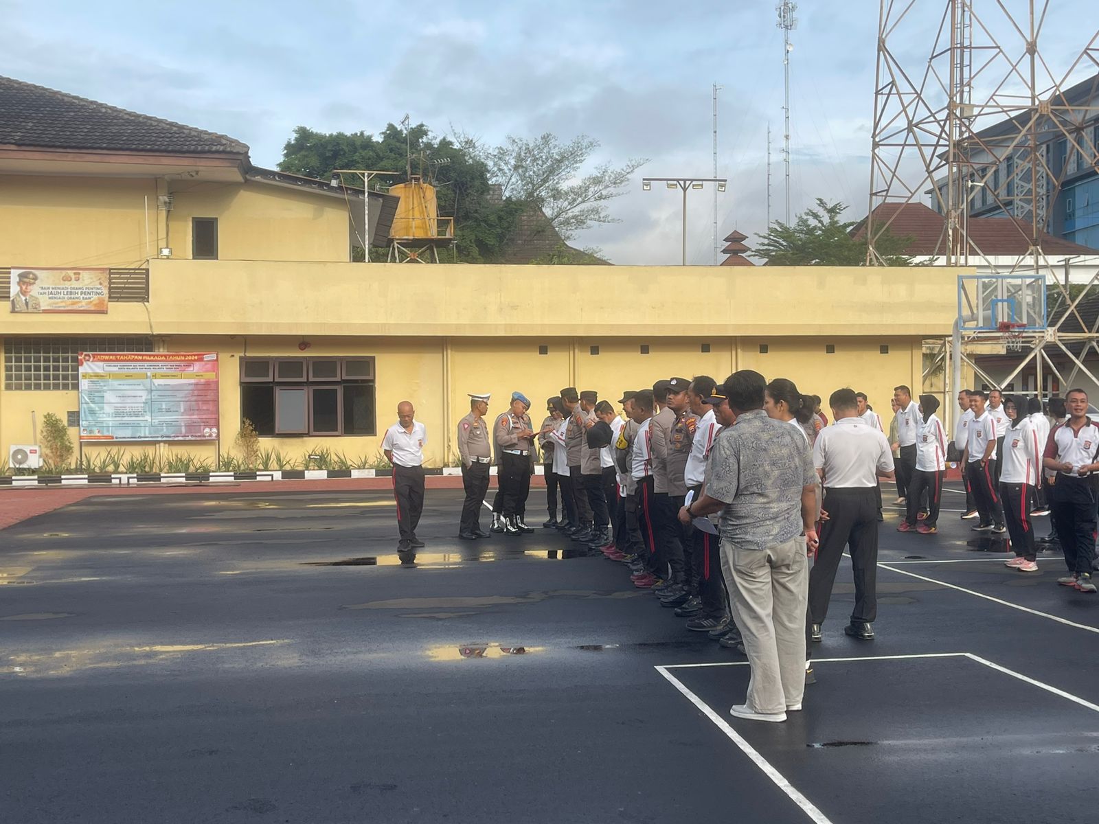 Personil Sipropam Polres Cilegon melakukan Pengecekan absensi kehadiran pada saat pelaksanaan apel pagi, Senin (21/10/2025) bertempat di Lapangan  Apel Polres Cilegon.