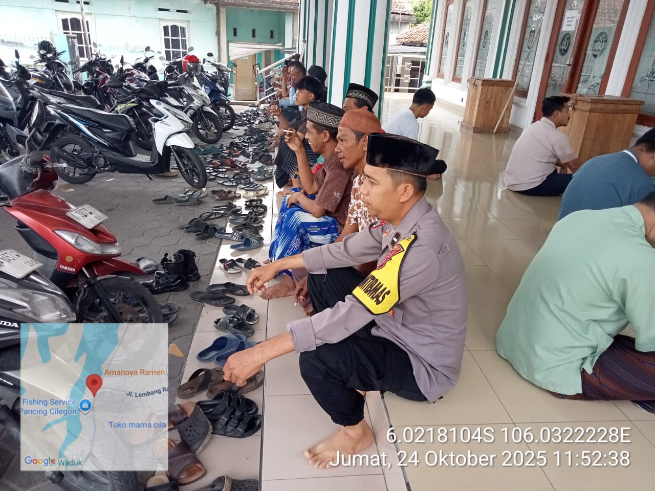 Cilegon - Bhabinkamtibmas Polsek Ciwandan Polres Cilegon Polda Banten Selesai melaksanakan Sholat secara berjama’ah dan Sampaikan Himbauan-himbauan Kamtibmas Kepada Masyarakat Jama'ah Yang ada Dimasjid, Minggu (26/10/2025).