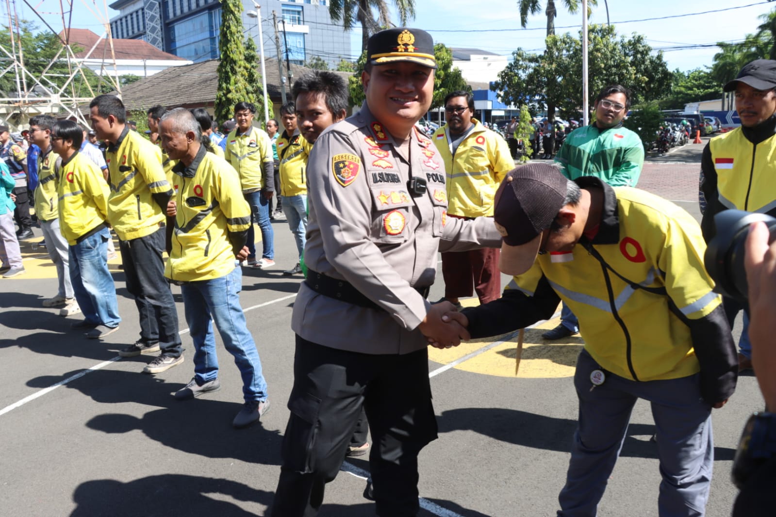 Melalui Apel Bersama, Polres Cilegon Ajak Buruh dan Ojol Tolak Provokasi dan Hoaks