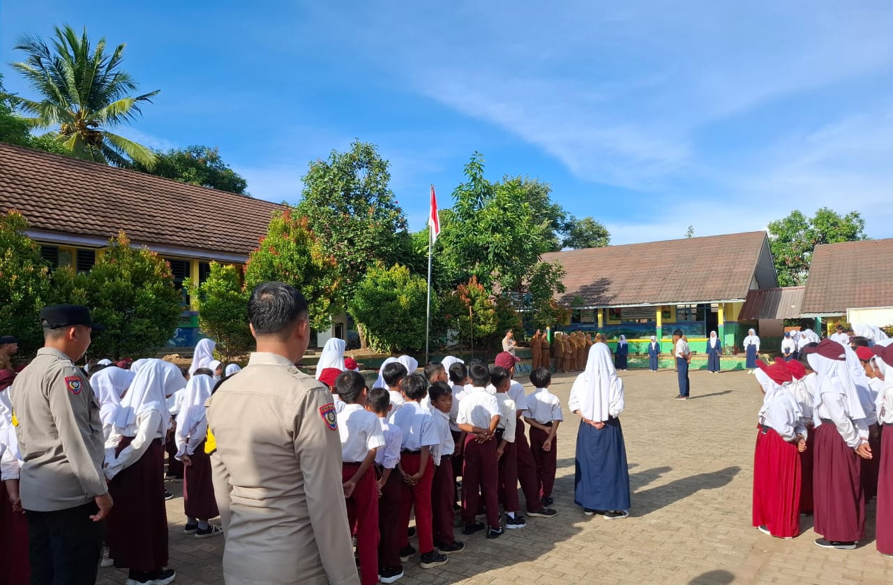 Kapolres Cilegon Polda Banten AKBP Dr. Martua Raja Taripar Laut Silitonga melalui Kapolsek Anyar Polres Cilegon Polda Banten IPTU Iwan Sofiyan menerangkan bahwa telah melakukan kegiatan memimpin Upacara di Sekolah SDN dan SMPN satu Atap Desa Banjarsari Kec. Anyar, serta mengimplementasikan Program Quick Wins Presisi Polri.