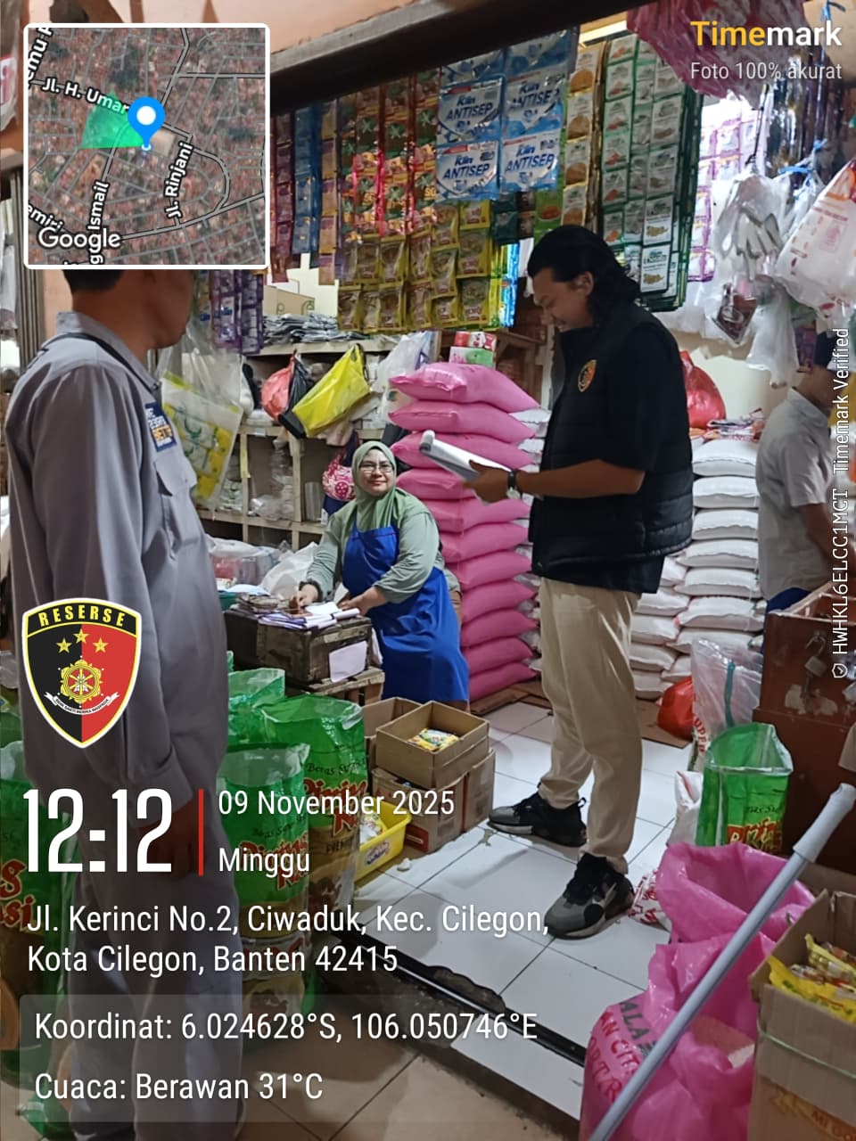 Cilegon – Unit II Satreskrim Polres Cilegon Polda Banten melakukan pengecekan terhadap persediaan dan harga bahan pangan di Pasar Anyar, Cilegon, menjelang pelaksanaan di tahun 2025. minggu tanggal 09 11 2025.