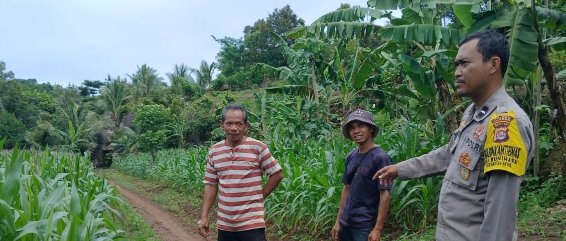Polsek Anyar Bersama Poktan Cek Tanaman Jagung di Wilayah