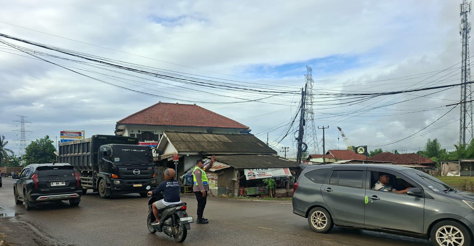 Strong Poin, Anggota Polsek Bojonegara Laksanakan Pengaturan lalu lintas di Wadas Bojonegara