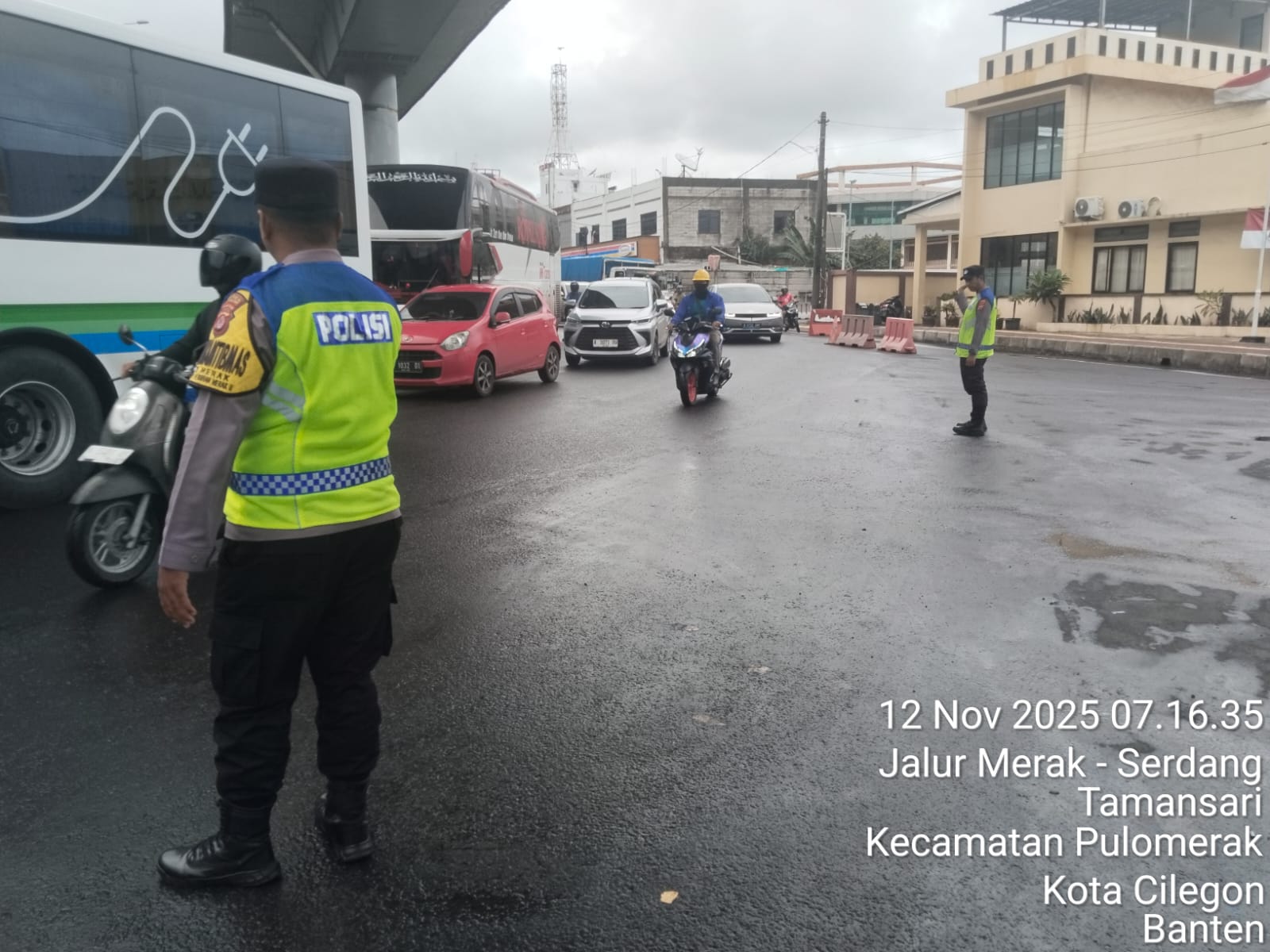Cilegon - Dalam rangka peningkatan pelayanan prima kepada masyarakat, Kskp Merak Polres Cilegon Polda Banten melaksanakan pengaturan antrian R4 yang akan masuk ke Kapal Ferry di Pelabuhan Merak, Rabu (12/11/2025).