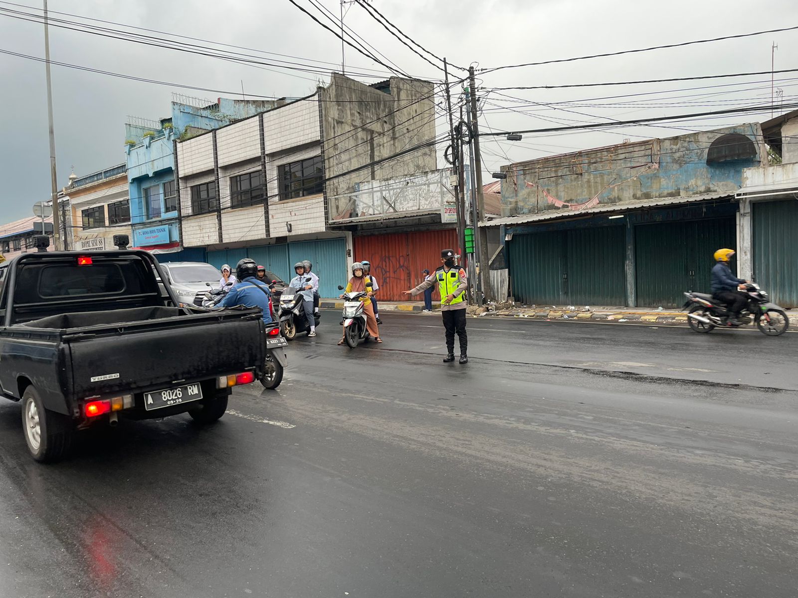 Cilegon,Polres Cilegon Polda Banten Pada Kamis/13/11/2025 Pukul 06.30 Wib, Personil Siwas Polres Cilegon, Brigpol Hadi sudrajat melaksanakan kegiatan pengaturan arus lalu lintas di Jalur Protokol jalan utama Kota Cilegon tepat nya di jalur protokol Kota Cilegon.