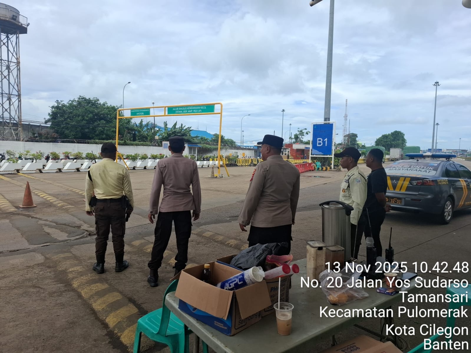 Cilegon - Personel Polsek Kskp Merak Polres Cilegon Polda Banten melaksanakan sambang dan patroli kawasan pelabuhan merak dalam rangka menjaga Harkamtibmas di Kawasan Pelabuhan Merak, Kamis (13/11/2025).