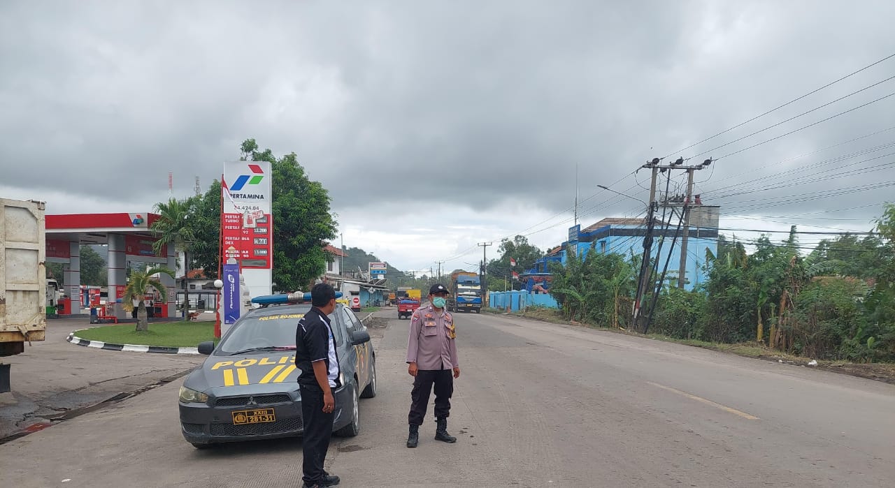 Strong Poin Sore, Anggota Polsek Bojonegara Laksanakan Pengaturan lalu lintas di Depan SPBU Bojonegara*