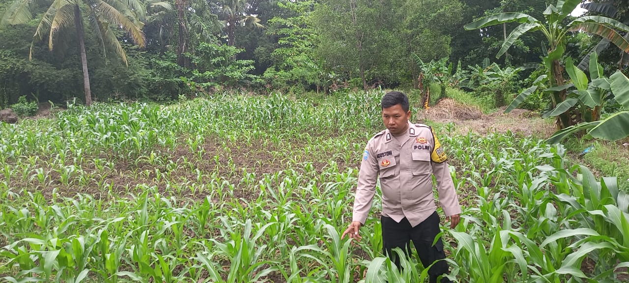BHABINKAMTIBMAS POLSEK PURWAKARTA LAKUKAN PENGECEKAN PERTUMBUHAN JAGUNG DI WILAYAH KOTABUMI