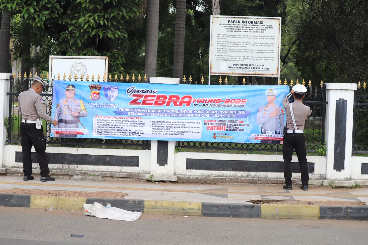 Cilegon – Jajaran Satuan Lalu Lintas Polres Cilegon Polda Banten kembali melanjutkan pelaksanaan Operasi Zebra Maung 2025 pada hari kedua dengan fokus kegiatan di kawasan sekitar Rumah Dinas Walikota Cilegon dan Masjid Agung Cilegon, Selasa (18/11/2025). Kegiatan ini merupakan bagian dari upaya penegakan disiplin berlalu lintas yang digelar selama 14 hari, mulai 17–30 November 2025.