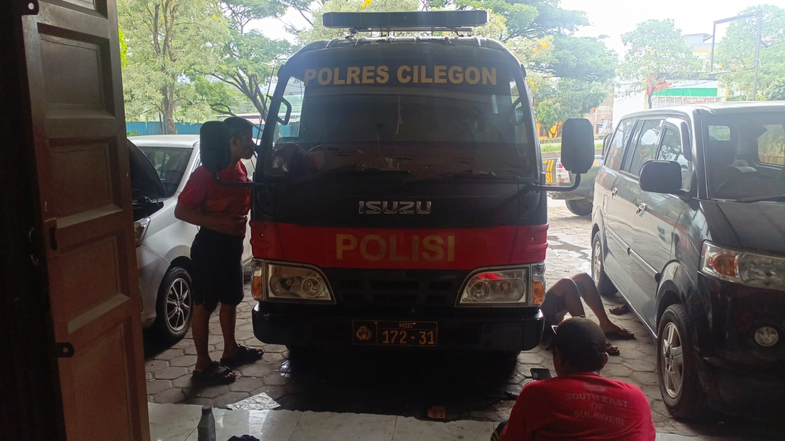 cilegon Polda Banten Staf Logistik melakukan pengecekan perawatan kendaraan