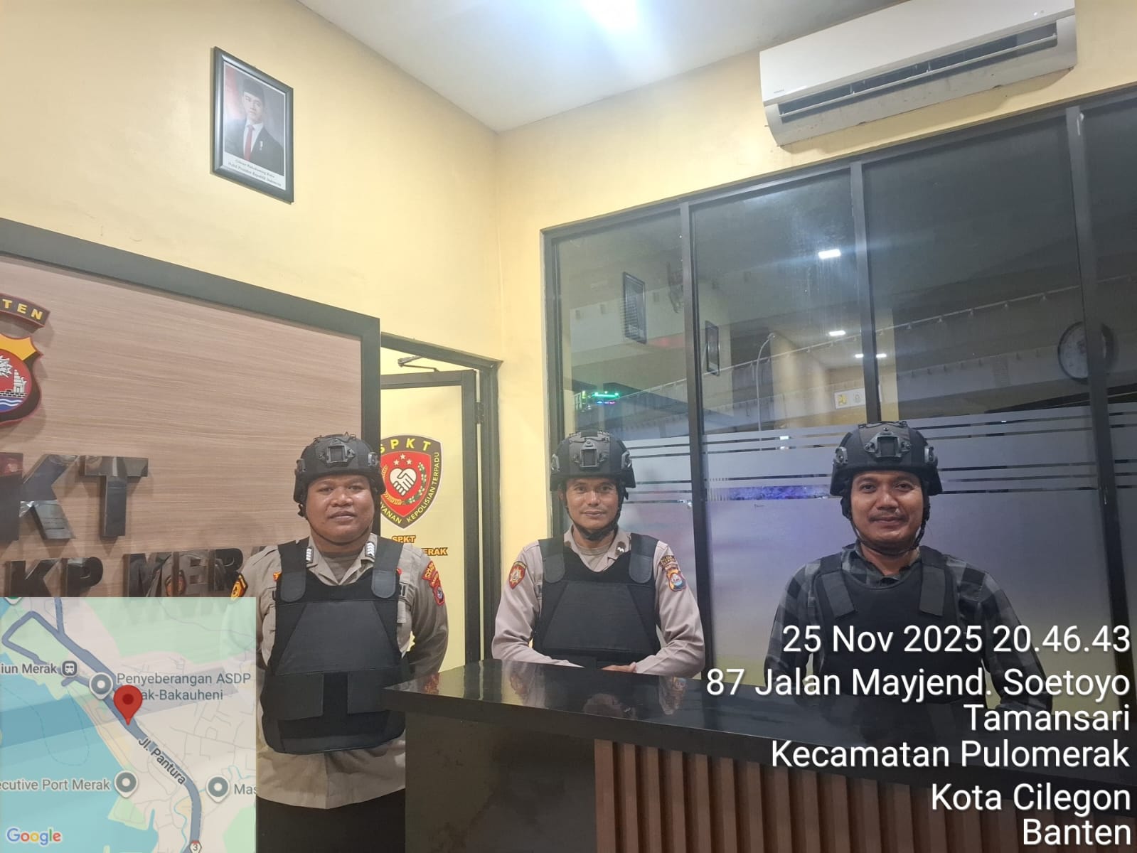 Cilegon - Personel piket jaga Polsek Kskp Merak Polres Cilgon Polda Banten melaksanakan siaga 1 Polsek pelaksanaan Sispam Mako oleh piket siaga dipimpin oleh Kspk Polsek Kskpy Merak Polres Cilegon Polda Banten, Selasa (25/11/2025).
