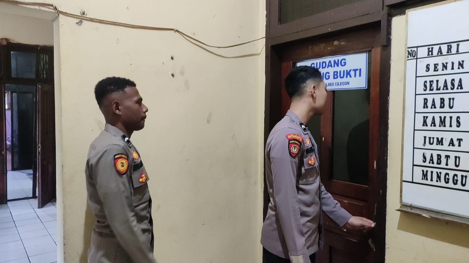 Anggota Piket Tahti Polres Cilegon Harus Melakukan Kegiatan Rutin Pengecekan Kelengkapan dan Barang Bukti Di Gudang Barang Bukti.