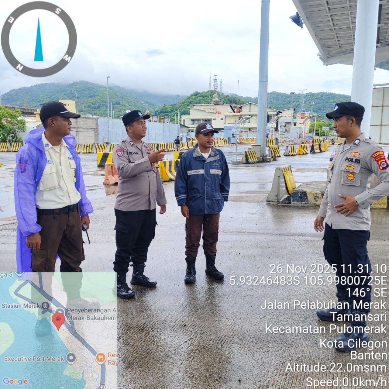 Cilegon - Personel Polsek Kskp Merak Polres Cilegon Polda Banten melaksanakan sambang dan patroli kawasan pelabuhan merak dalam rangka menjaga Harkamtibmas di Kawasan Pelabuhan Merak, Rabu (26/11/2025).