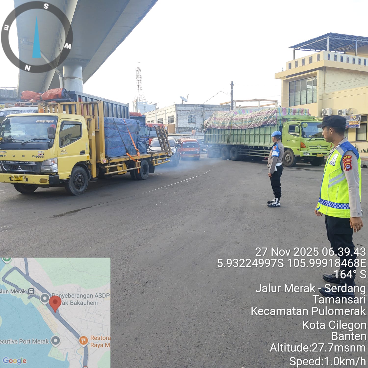 Cilegon - Dalam rangka peningkatan pelayanan prima kepada masyarakat, Kskp Merak Polres Cilegon Polda Banten melaksanakan pengaturan antrian R4 yang akan masuk ke Kapal Ferry di Pelabuhan Merak, Kamis (27/11/2025).