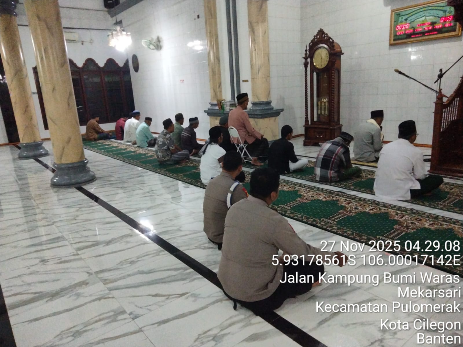 Cilegon – Personil Kskp Merak Polres Cilegon Polda Banten menggelar kegiatan Pembinaan Rohani dengan shalat subuh keliling di Masjid Yang ada Di Daerah hukum Polsek Kp Merak Polres Cilegon Polda Banten, Kamis (27/11/2025).