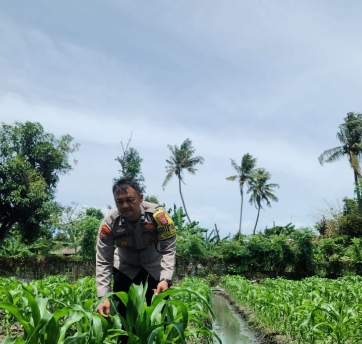 BHABINKAMTIBMAS KELURAHAN KEBONDALEM RUTIN MENGONTROL PERTUMBUHAN TANAMAN JAGUNG
