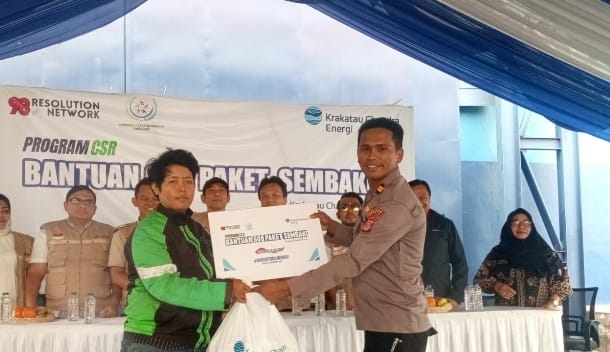 KAPOLSEK PURWAKARTA HADIRI PEMBAGIAN BANSOS SEMBAKO 300 PAKET BERSAMA PT KCE KRAKATAU CANDRA ENERGI CILEGON