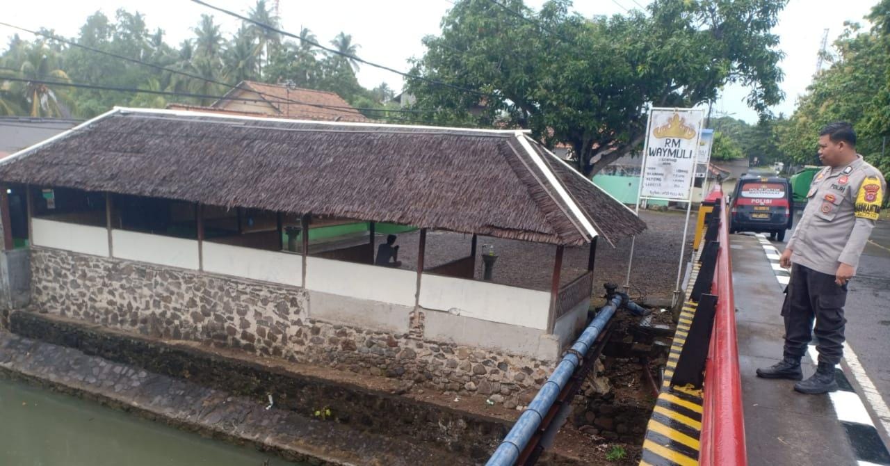 Patroli Kewilayahan Polsek Anyar Pacsa Diguyur Hujan Monitoring Debit Air