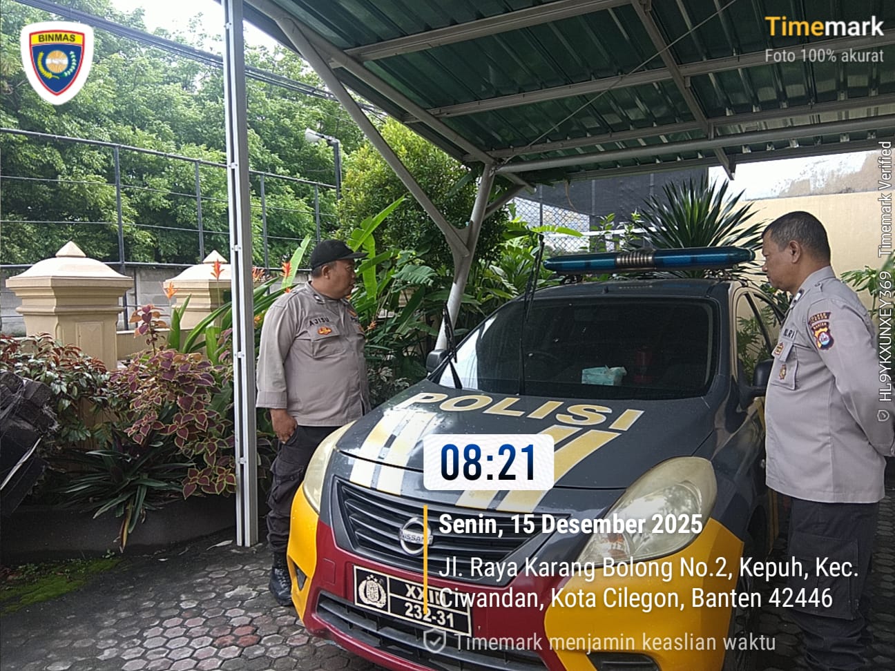 Cilegon - Ka SPKT Polsek Ciwandan Polres Cilegon Polda Banten Pimpin langsung pengecekan kendaraan Dinas Polsek Ciwandan, khususnya mobil patroli,Minggu (14/12/2025).