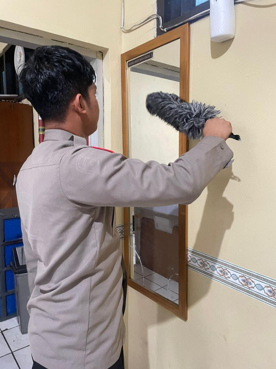 Anggota Bag SDM Polres Cilegon, selalu melakssanakan aktifitas kegiatan membersihkan ruangan kerja.