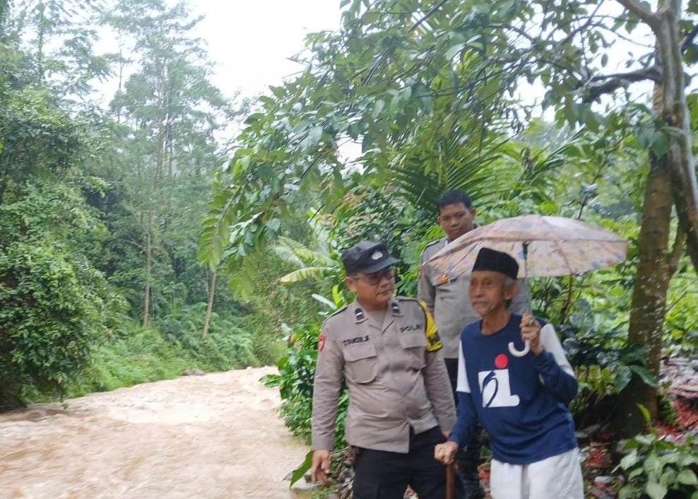 Dalam Siaga Bencana Personil Polsek Anyar Giat Patroli Dan Pantau Debit Air Wilayah Pasca Hujan