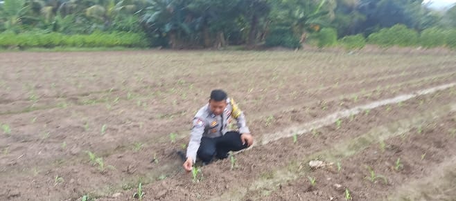Polsek purwakarta membantu petani memeriksa kondisi tanaman