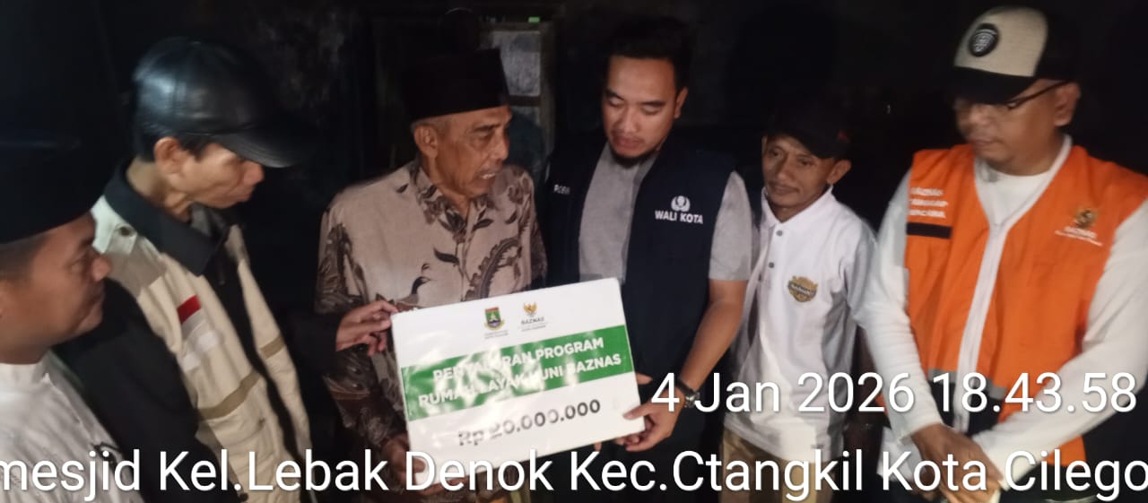 Cilegon - Polres Cilegon melalui Bhabinkamtibmas Kel Lebak Denok mendampingi Walikota Cilegon dan BAZNAS menyalurkan bantuan kepada Bapak TB Ahmad Asep Fuadi, pemilik rumah yang terdampak rubuh akibat cuaca ekstrem. Senin (05/01/2026).