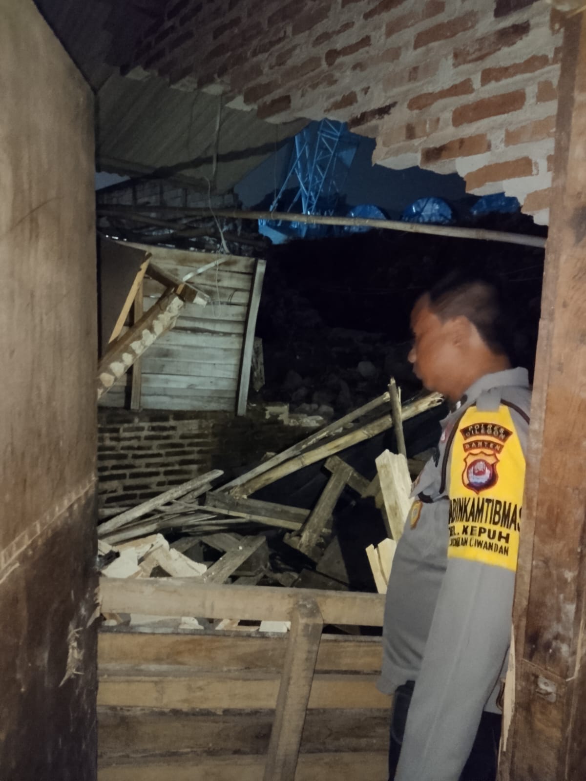 Cilegon - Bhabinkamtibmas, Babinsa Kel. Kepuh, Ketua LSM Ampuh, dan Lurah Kepuh melakukan pengecekan tembok belakang rumah warga dan gubung usaha di Link. Rombongan RT. 01/01 Kel. Kepuh, Ciwandan, Cilegon. Tembok rumah roboh tertimpa pondasi PT. KENERTEK POWER SISTEM pasca banjir pada Senin (05/01/2026).