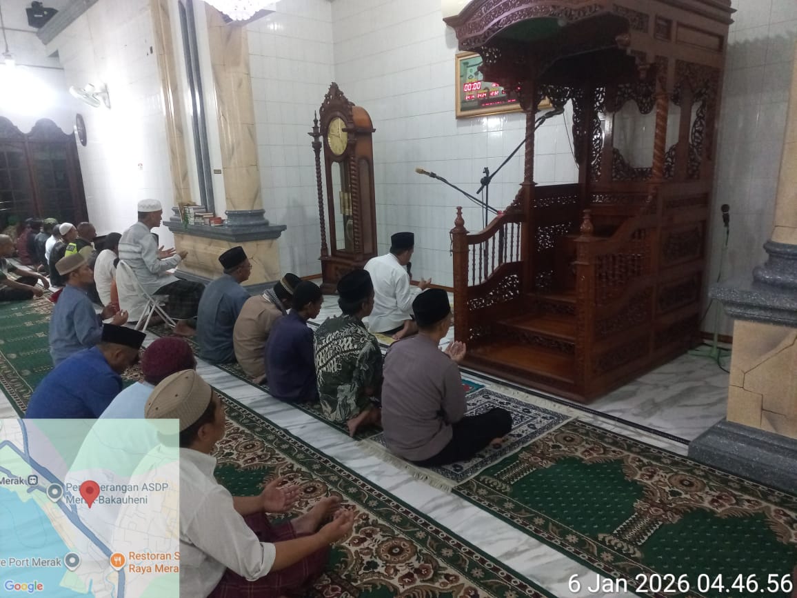 Cilegon – Personil Kskp Merak Polres Cilegon Polda Banten menggelar kegiatan Pembinaan Rohani dengan shalat subuh keliling di Masjid Yang ada Di Daerah hukum Polsek Kp Merak Polres Cilegon Polda Banten, Selasa (06/01/2026).