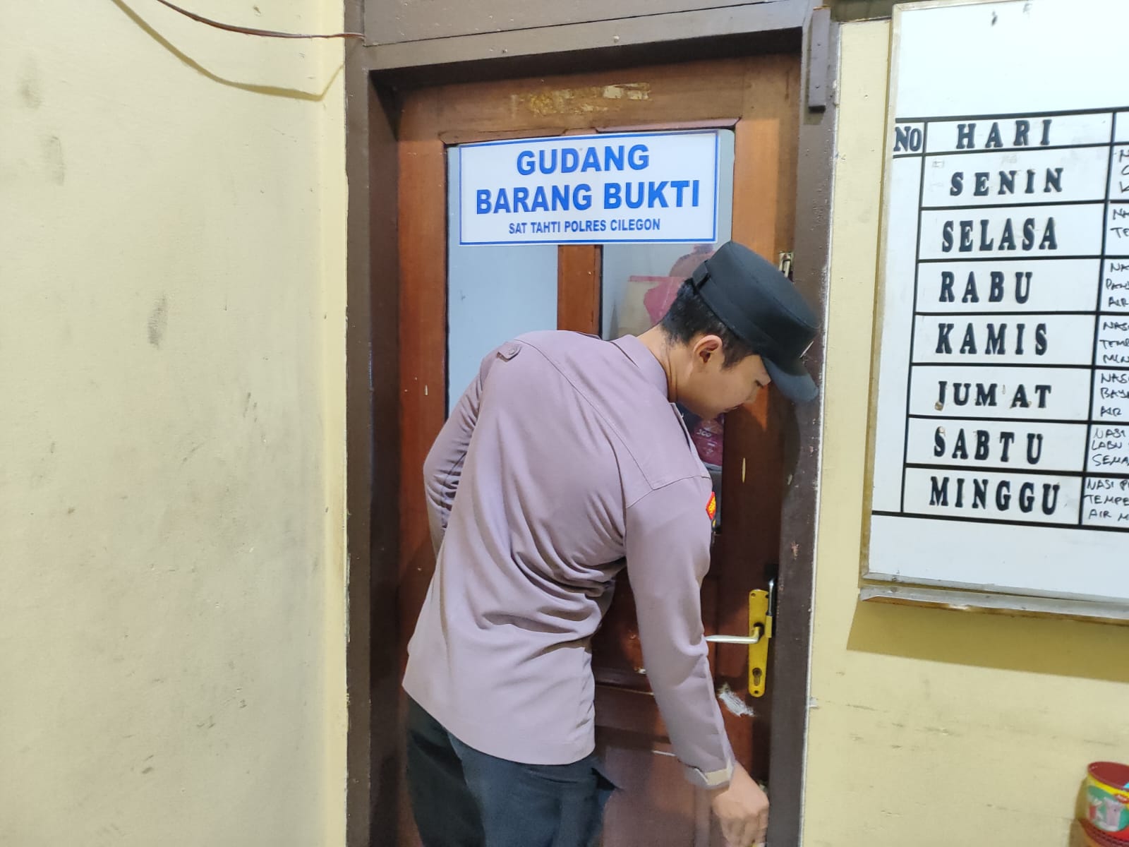 Piket Sat Tahti Melaksanakan Kegiatan Pengecekan Barang Bukti Di Sattahti Polres Cilegon