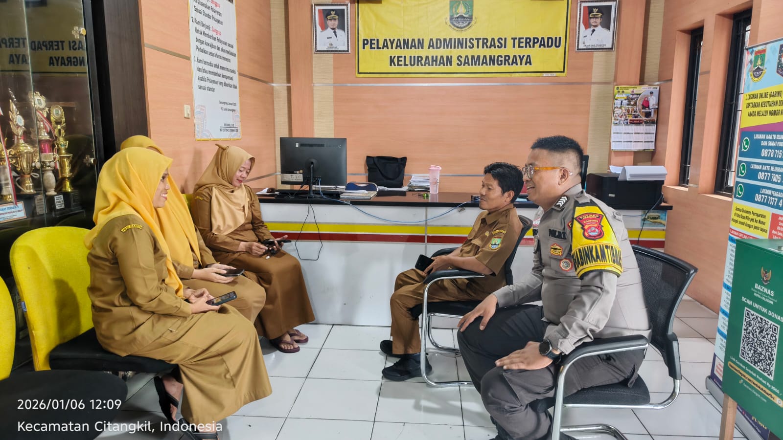 Cilegon - Bhabinkamtibmas Kelurahan Samangraya Polsek Ciwandan Polres Cilegon Polda Banten BRIPKA Marisco melaksanakan kegiatan sambang Dialogis Dan silaturahmi Bersama Lurah Dan Staff Kelurahan Samangraya Kecamatan Citangkil Kota Cilegon, Selasa (06/01/2026).