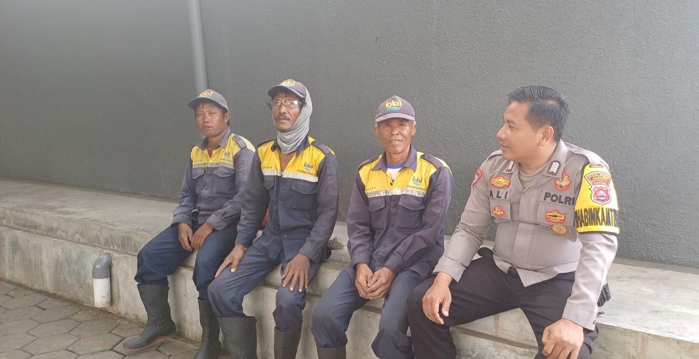 Jalin Silaturahmi, Bhabinkamtibmas Pelabuhan Polsek Kawasan Pelabuhan Banten berbincang ke Buruh Pelabuhan