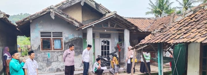bhabinkanthibmas,lurah tegal bunder dan tim baznas kota cilegon lakukan pendampingan pengecekan rumah penerima bantuan