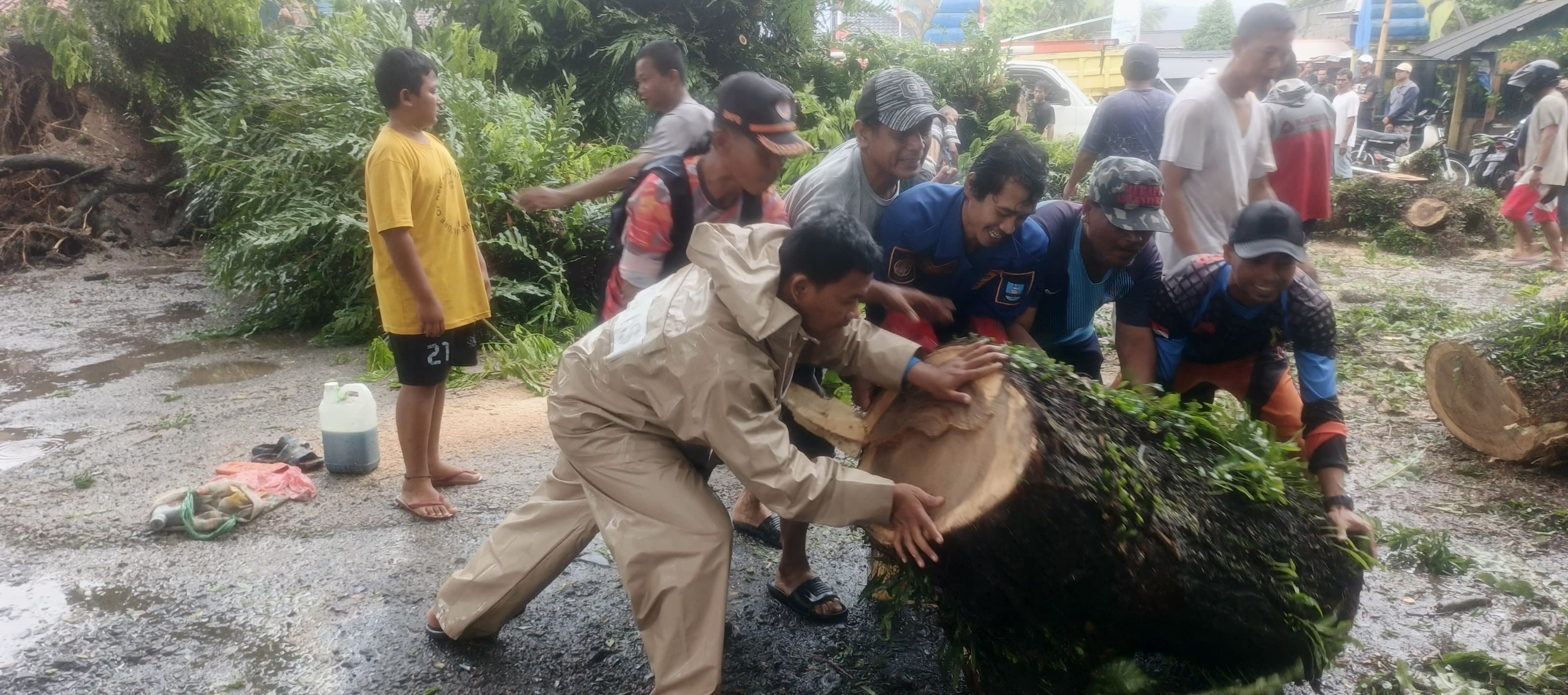 di samping Kp. Sirih Lor Ds. Bandulu Kec. Anyar Kab. Serang telah terjadi pohon tumbang yang diakibatkan hujan lebat dan angin kencang, Senin (12/01).