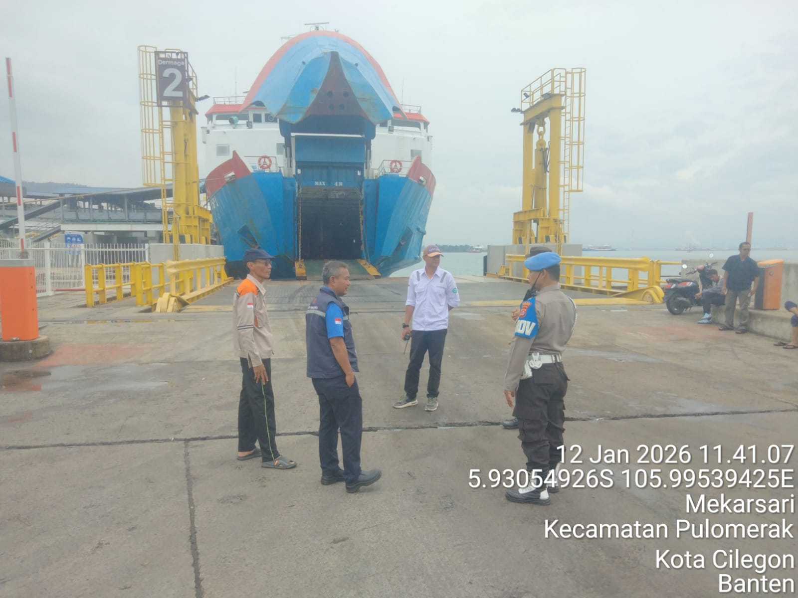 Cilegon - Personel Polsek Kskp Merak Polres Cilegon Polda Banten melaksanakan sambang dan patroli kawasan pelabuhan merak dalam rangka menjaga Harkamtibmas di Kawasan Pelabuhan Merak, Senin (12/01/2026).