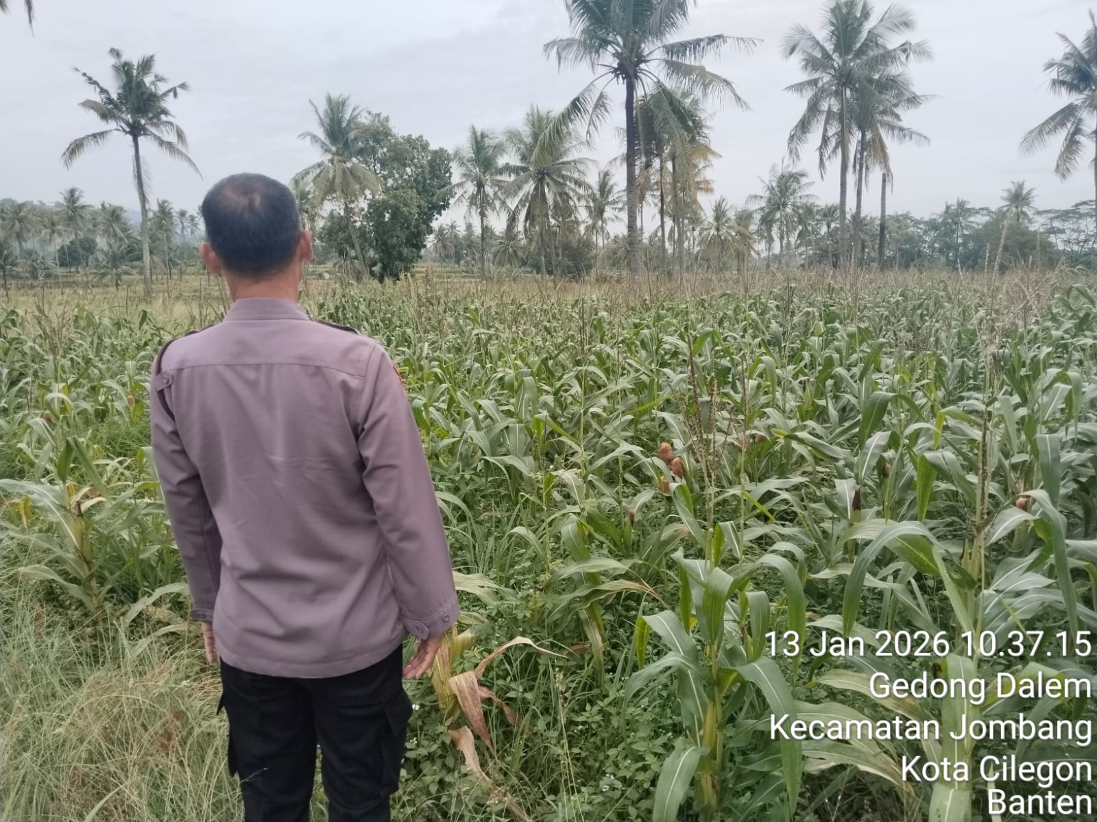 Cilegon - Melaksanakan program pemerintah, penanaman jagung dalam program ketahanan pangan, personil Polsek Kp Merak Polres Cilegon Polda Banten melaksanakan kegiatan peninjauan serta monitoring lokasi yang nantinya akan ditanami bibit jagung unggul di Desa Mangkunegara Kecamatan Bojonegara, Kabupaten Serang, Selasa (13/01/2026).