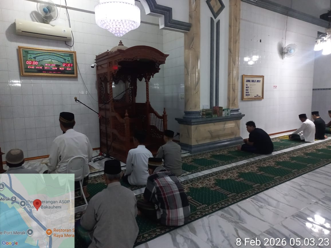 Cilegon – Personil Kskp Merak Polres Cilegon Polda Banten menggelar kegiatan Pembinaan Rohani dengan shalat subuh keliling di Masjid Yang ada Di Daerah hukum Polsek Kp Merak Polres Cilegon Polda Banten, Minggu (08/02/2026).