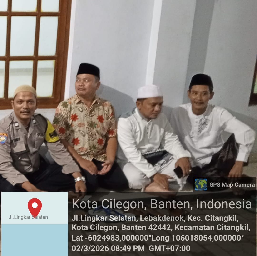Cilegon - Bhabinkamtibmas Polsek Ciwandan Polres Cilegon Polda Banten melaksanakan kegiatan Sholat Tarawih Keliling (Tarling) di Mesjid Daerah Binaannya, Senin (02/03/2026).