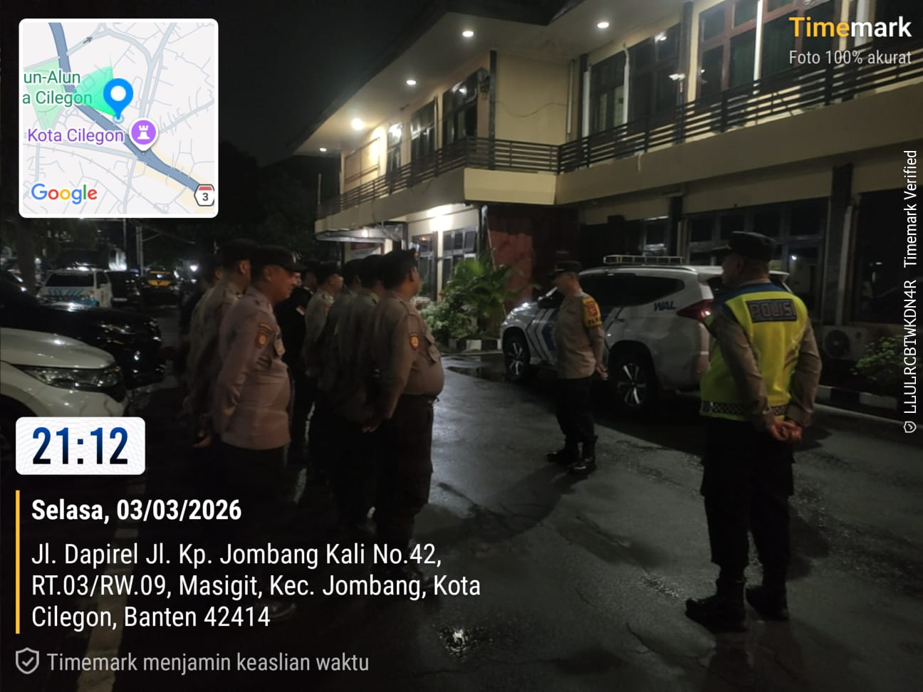 Polres Cilegon melaksanakan patroli malam sebagai upaya menjaga keamanan dan ketertiban masyarakat. Kegiatan ini dilakukan secara rutin dengan menyasar titik-titik rawan kriminalitas, pusat keramaian, serta kawasan pemukiman warga. Dalam pelaksanaannya, petugas berkeliling menggunakan kendaraan dinas sambil memantau situasi dan berinteraksi langsung dengan masyarakat.