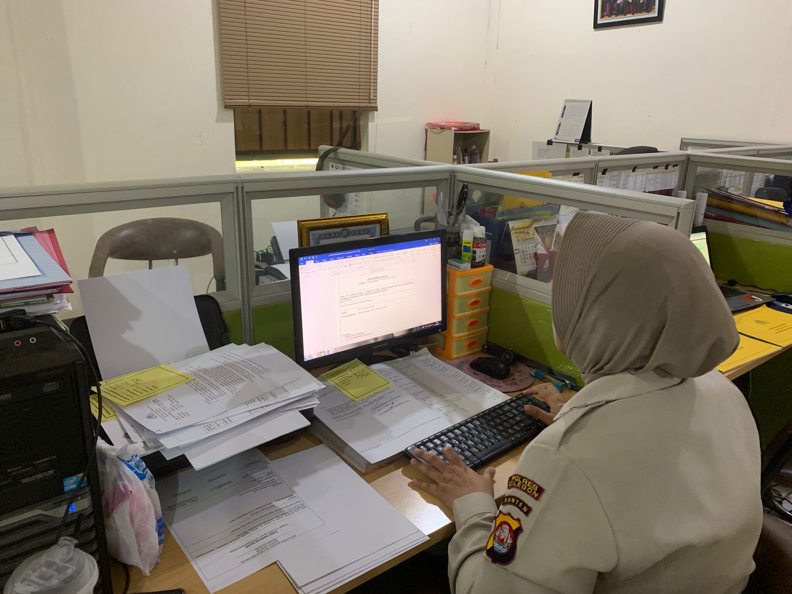 Di tengah tumpukan berkas dan dokumen yang harus diselesaikan, personel tersebut terlihat teliti dan cermat dalam memeriksa data melalui perangkat komputer. Proses ini mencakup input data, verifikasi dokumen, hingga penyusunan laporan yang akurat dan dapat dipertanggungjawabkan.